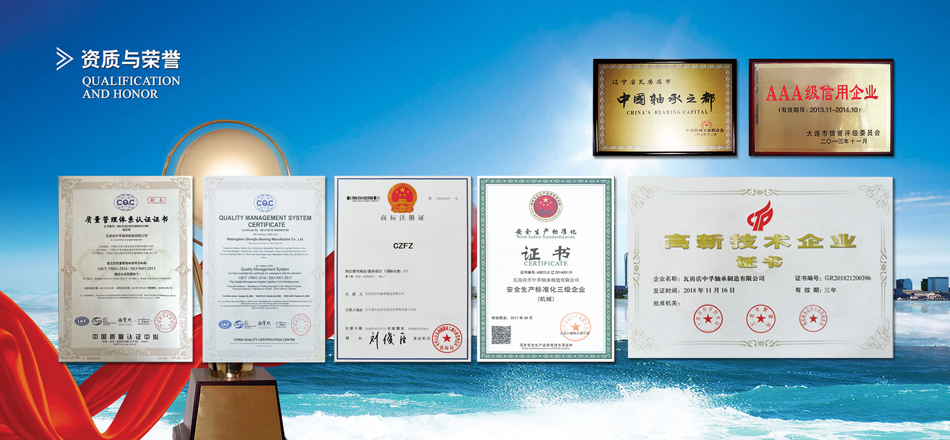 瓦房店中孚軸承制造有限公司專業(yè)生產(chǎn)礦用汽車軸承和配件,擁有獨立礦用汽車軸承設(shè)計和產(chǎn)品研制部門,具備開發(fā)礦用汽車軸承的能力,保證軸承的使用壽命和高穩(wěn)定性,并建立了完整的質(zhì)量體系,已通過ISO9001:2015質(zhì)量管理體系認證。
